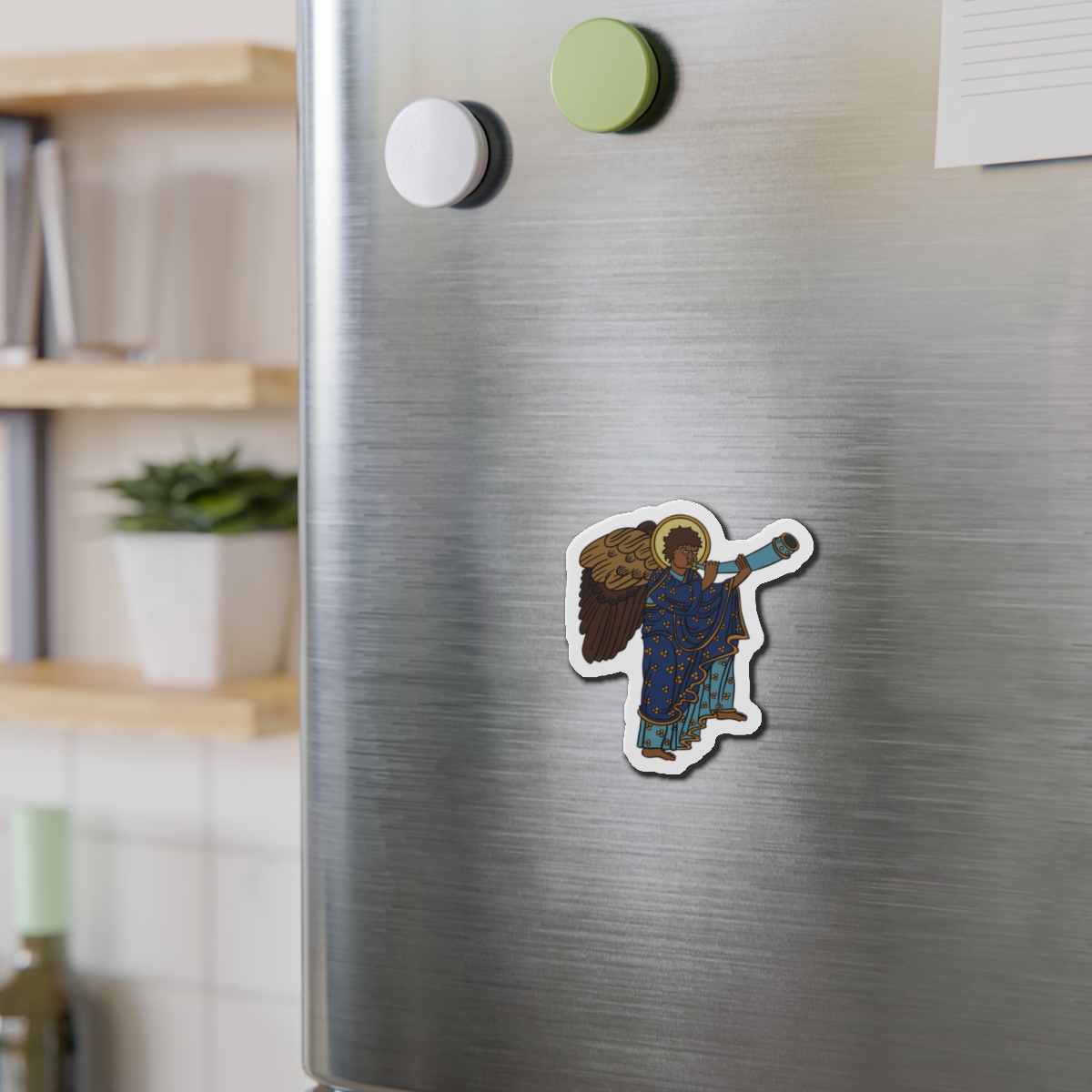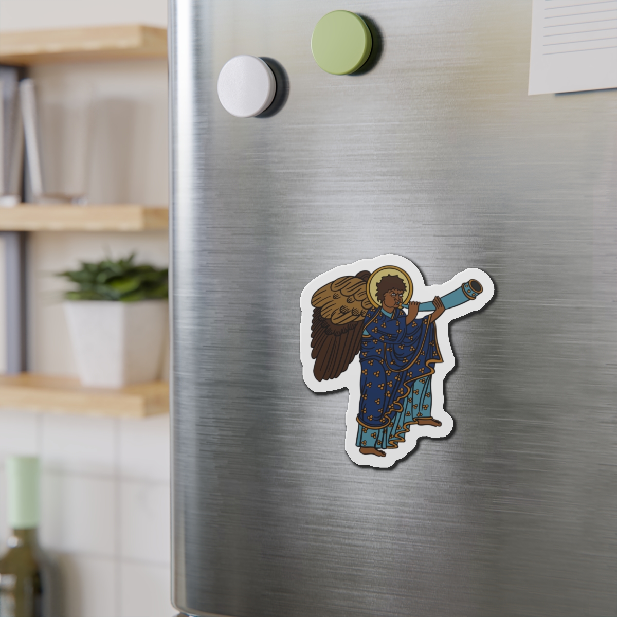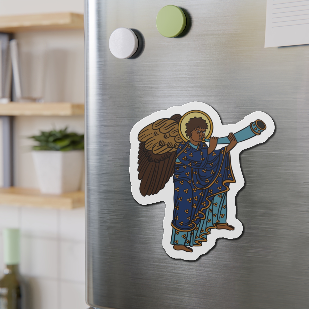 These Blue Medieval Angel magnets by SHA’ELL bring that bit of extra personality to any space they’re placed on. Made with the die-cut technique, these magnets are flexible and highly durable. Choose between 5 different sizes of magnet and get the best fit for your decorating needs.
