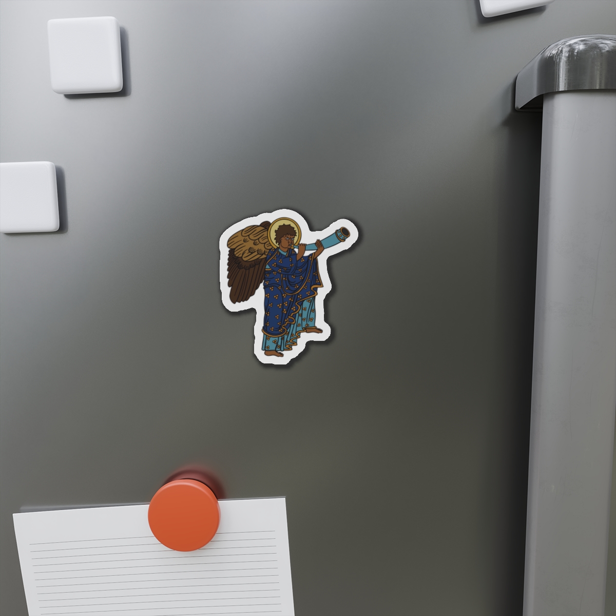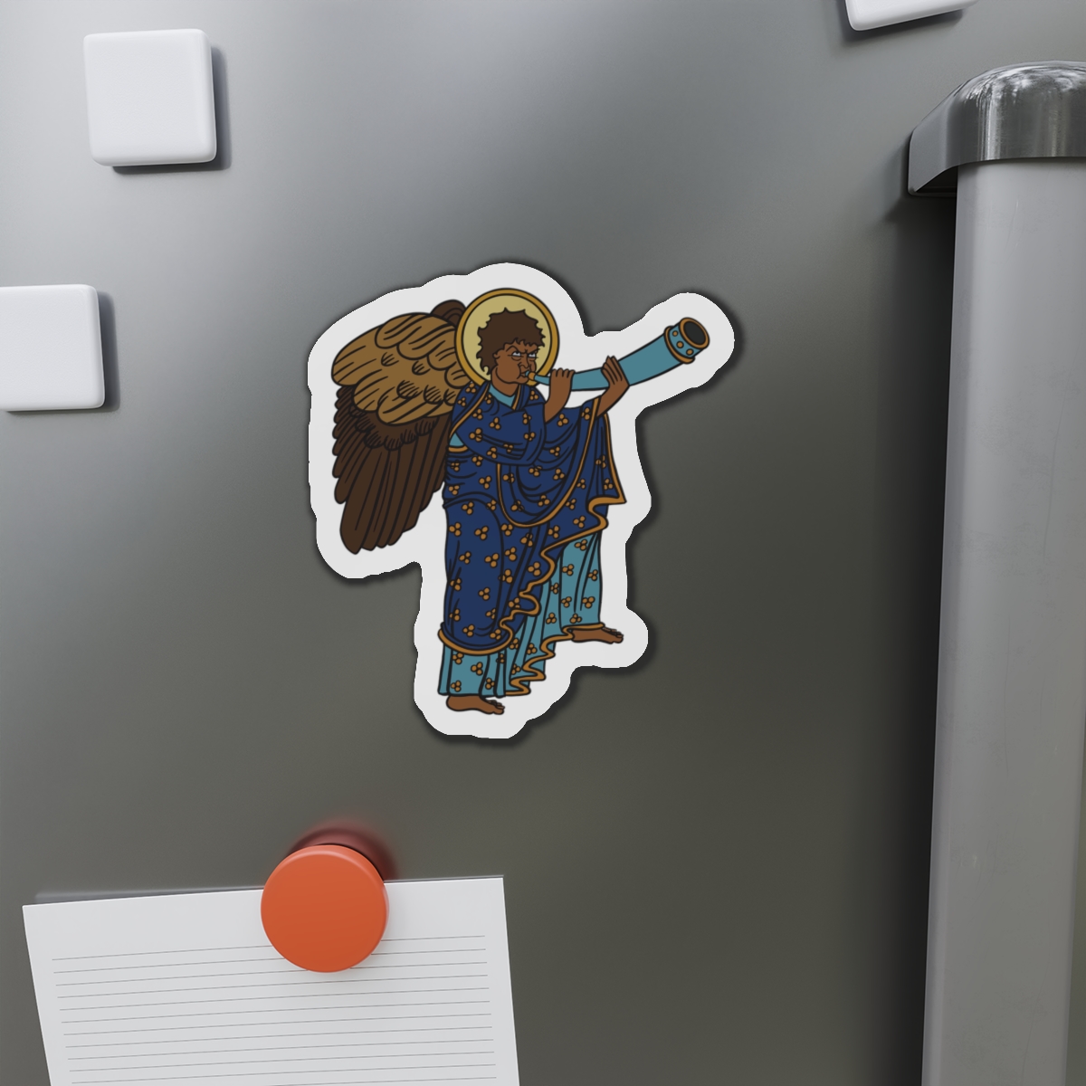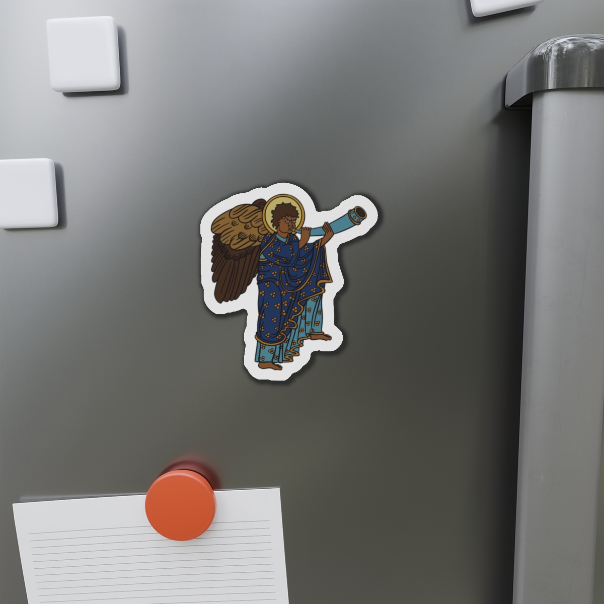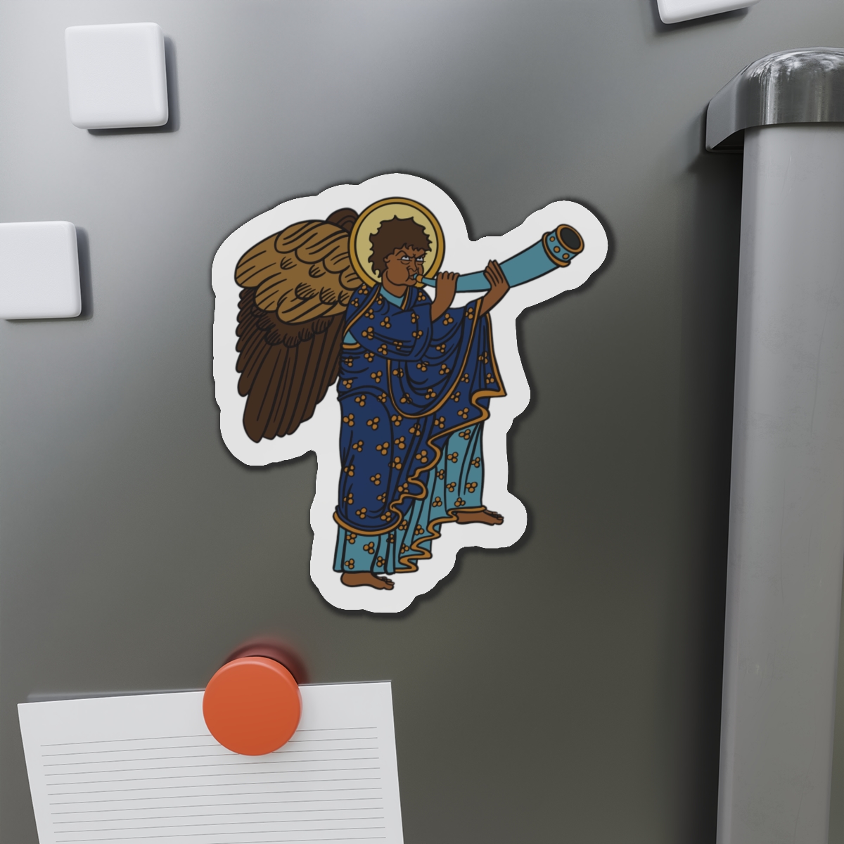 These Blue Medieval Angel magnets by SHA’ELL bring that bit of extra personality to any space they’re placed on. Made with the die-cut technique, these magnets are flexible and highly durable. Choose between 5 different sizes of magnet and get the best fit for your decorating needs.