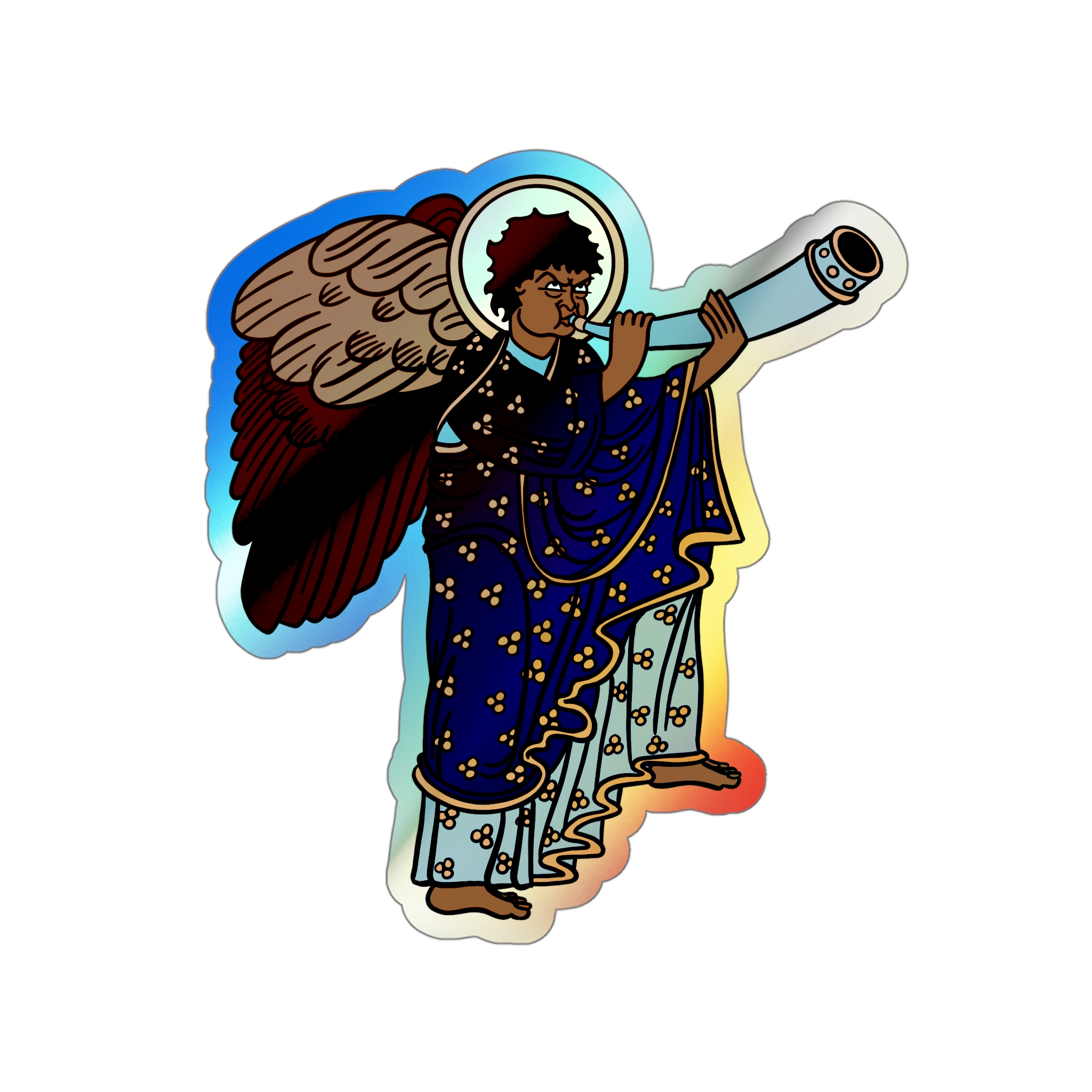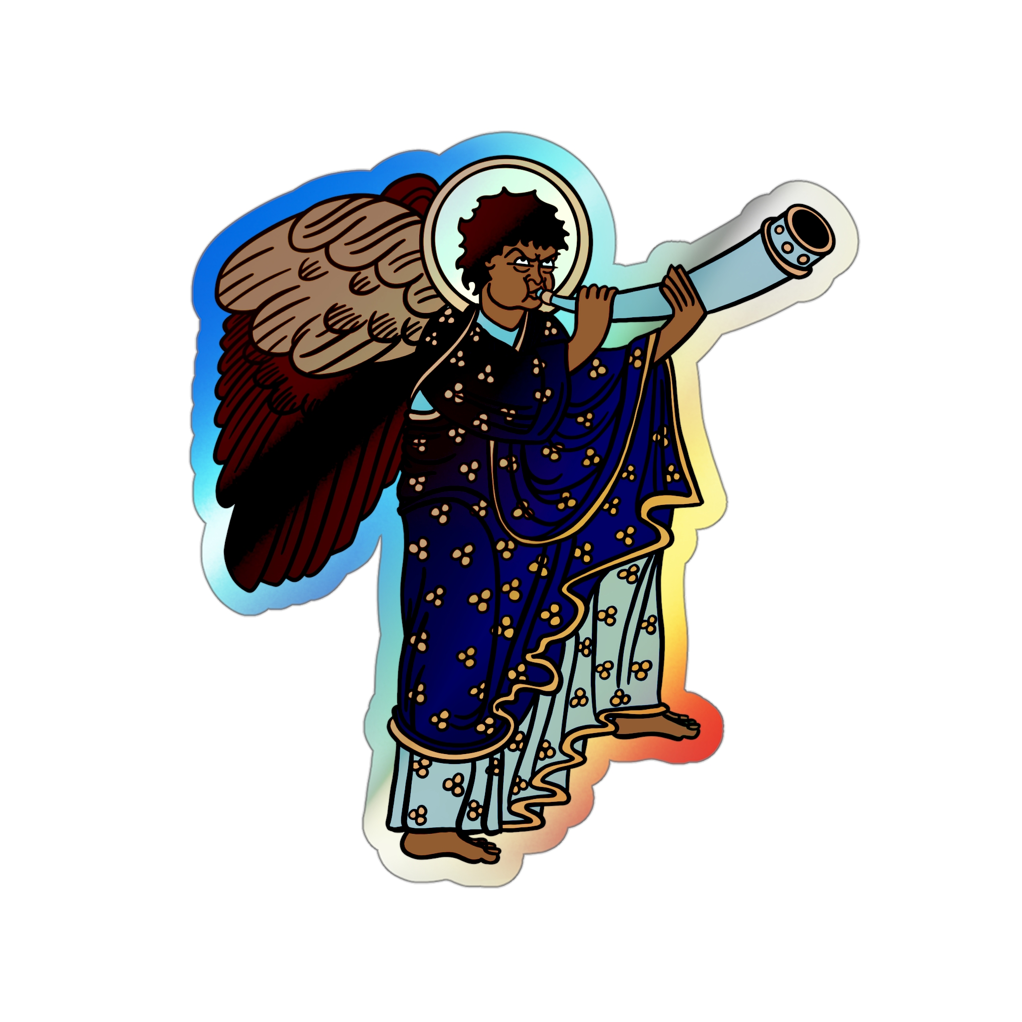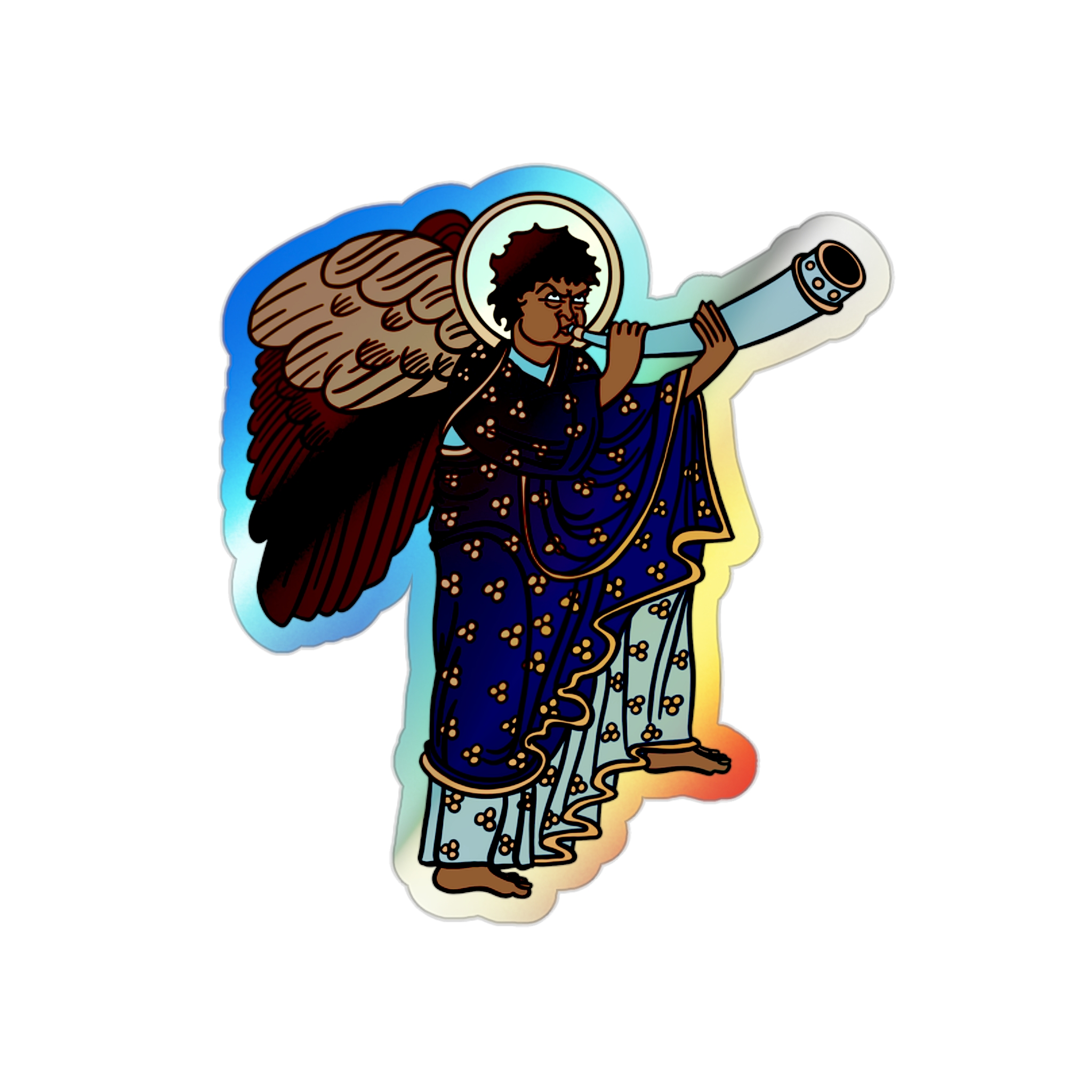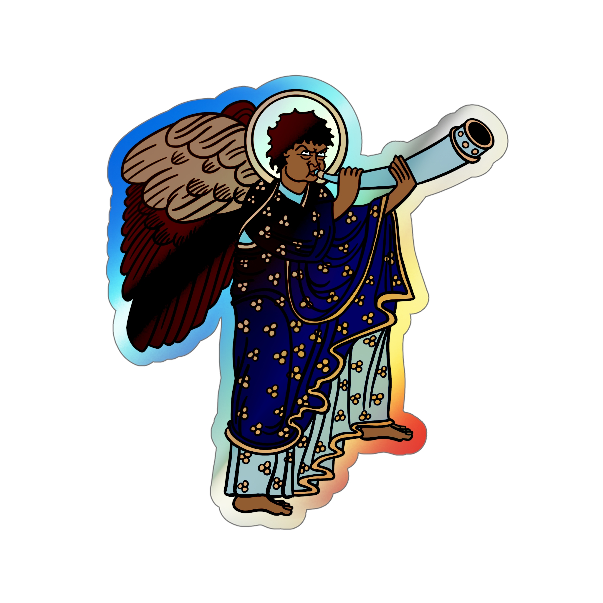 Blue Medieval Angel – Rainbow-Chrome Vinyl Sticker