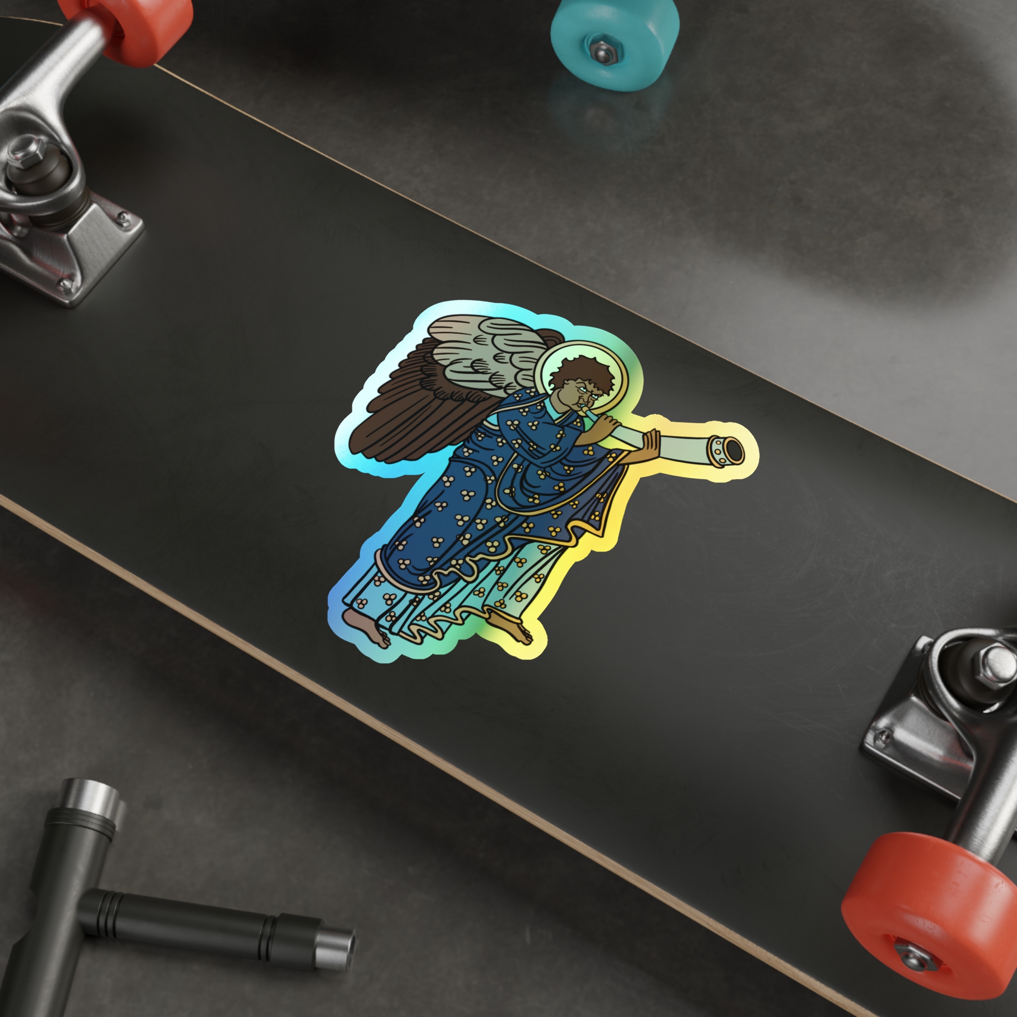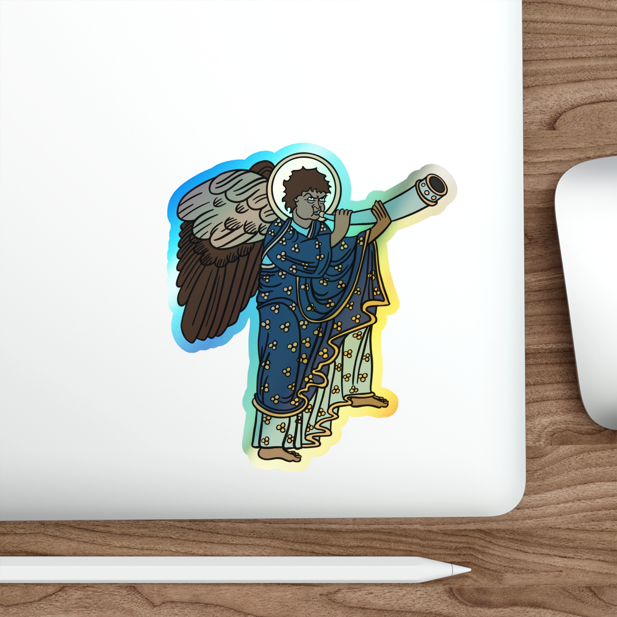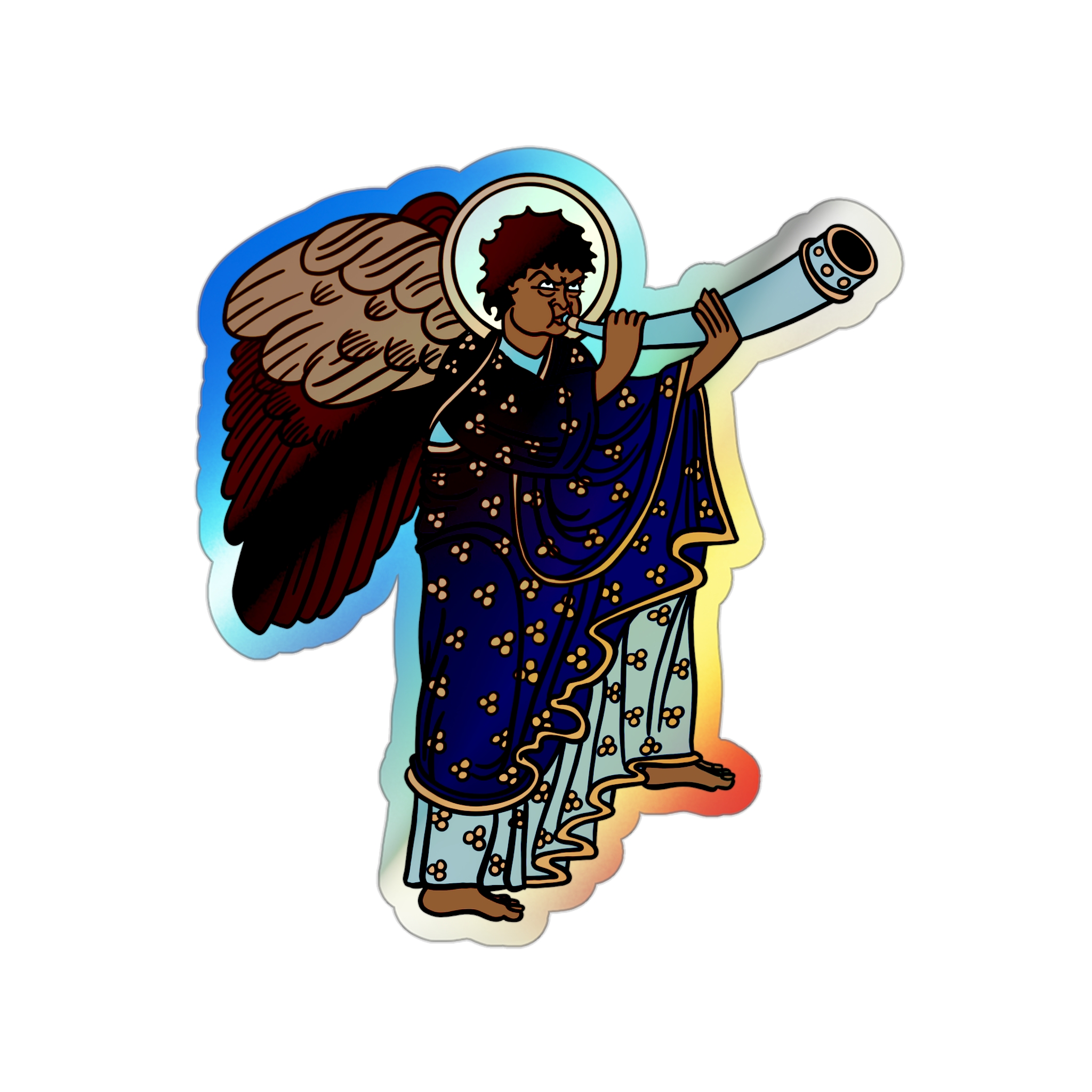 Blue Medieval Angel – Rainbow-Chrome Vinyl Sticker