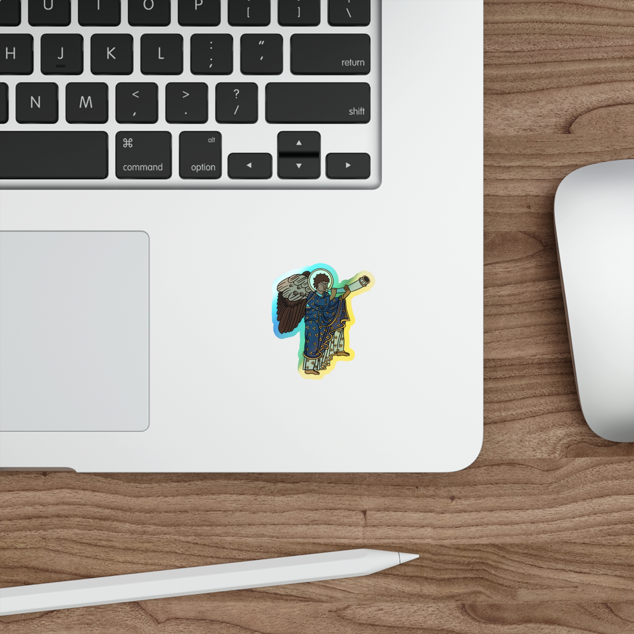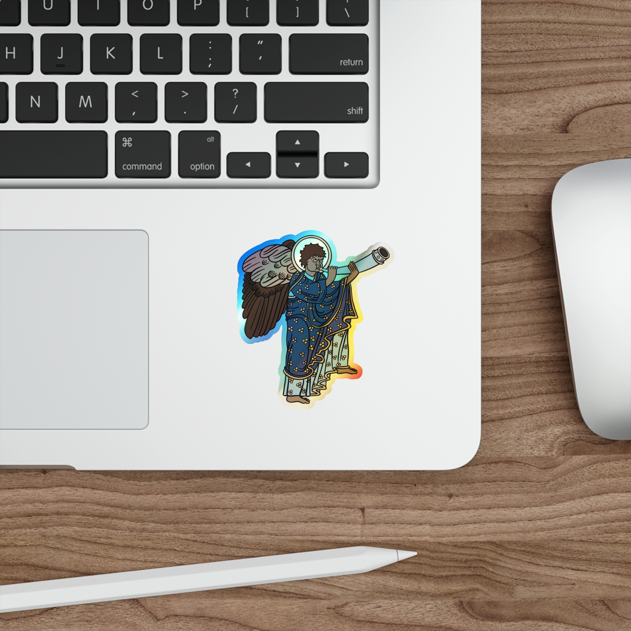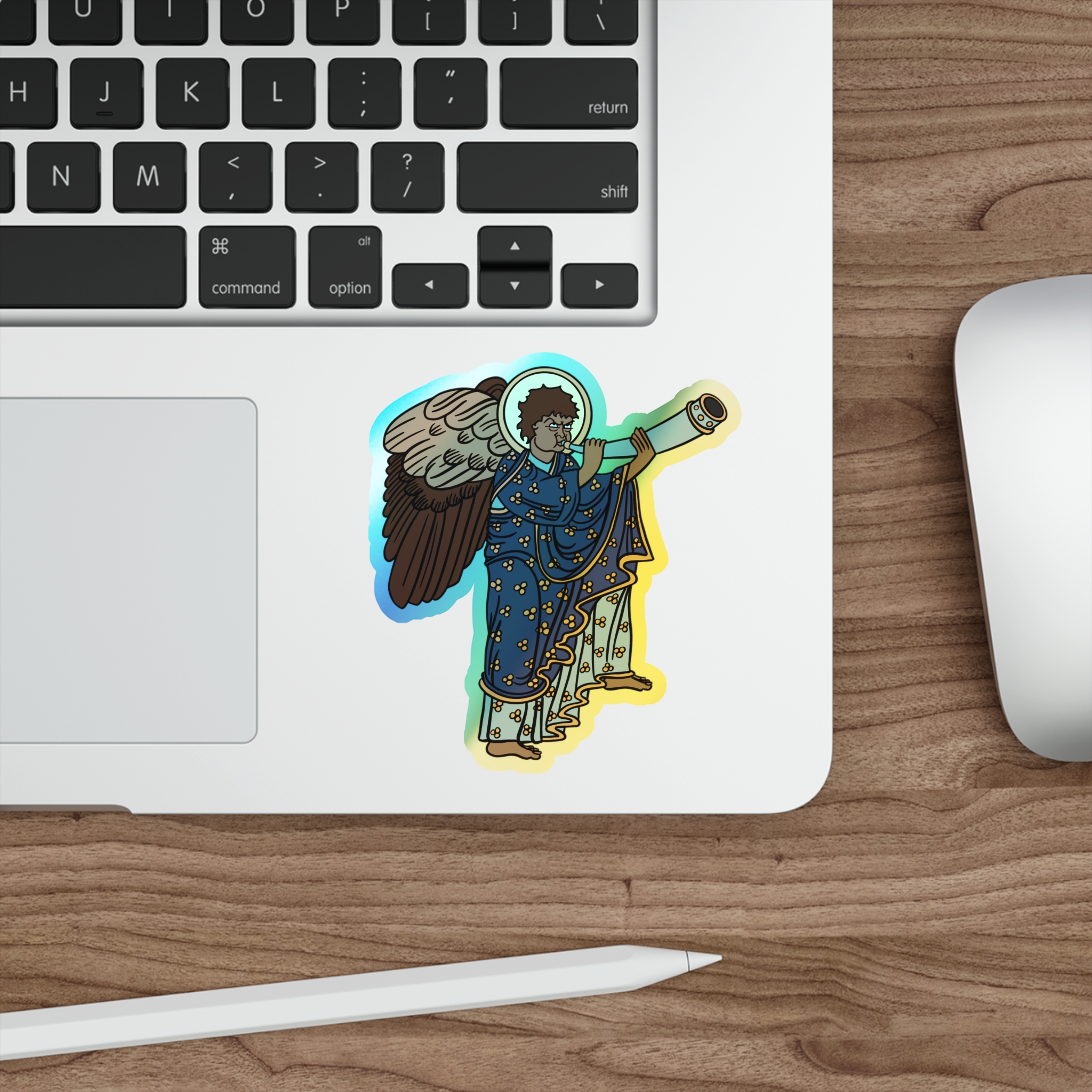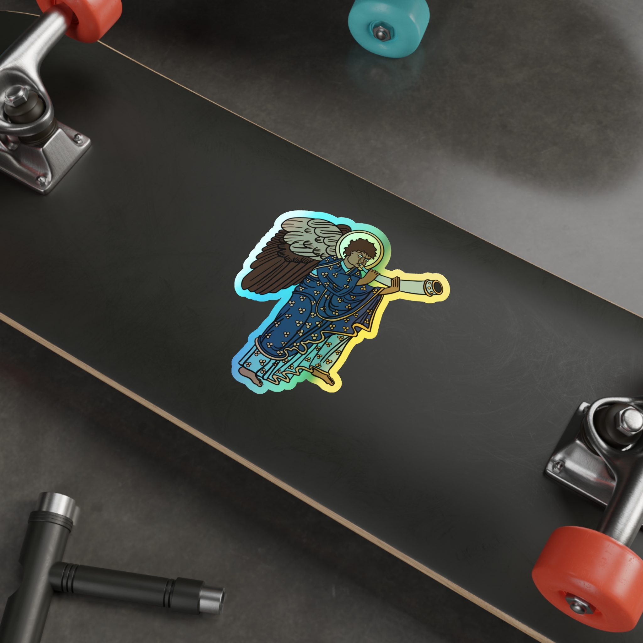 Blue Medieval Angel – Rainbow-Chrome Vinyl Sticker