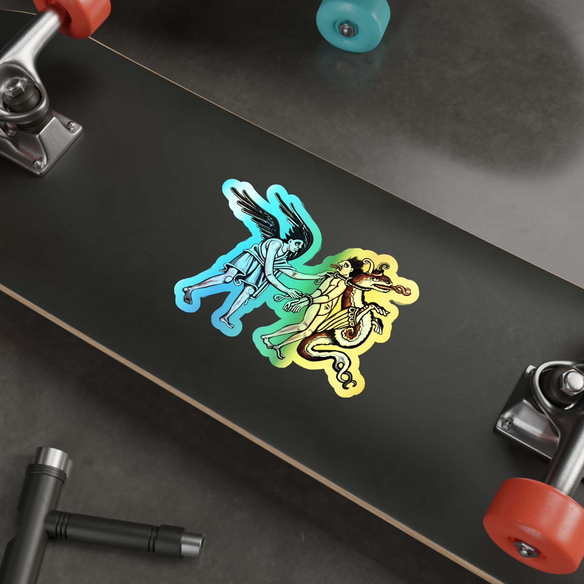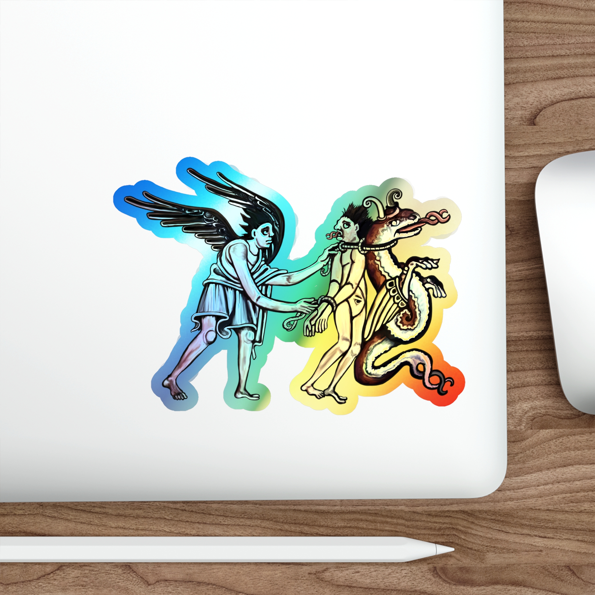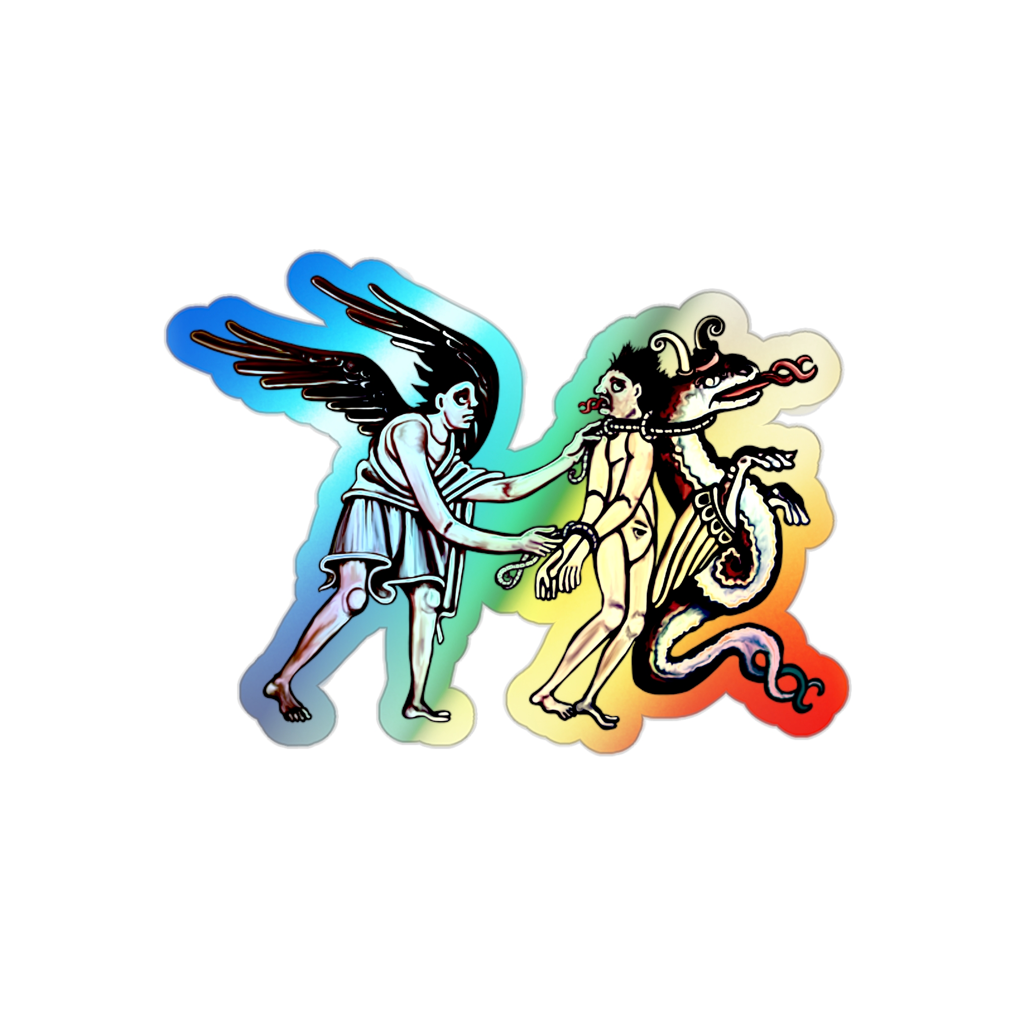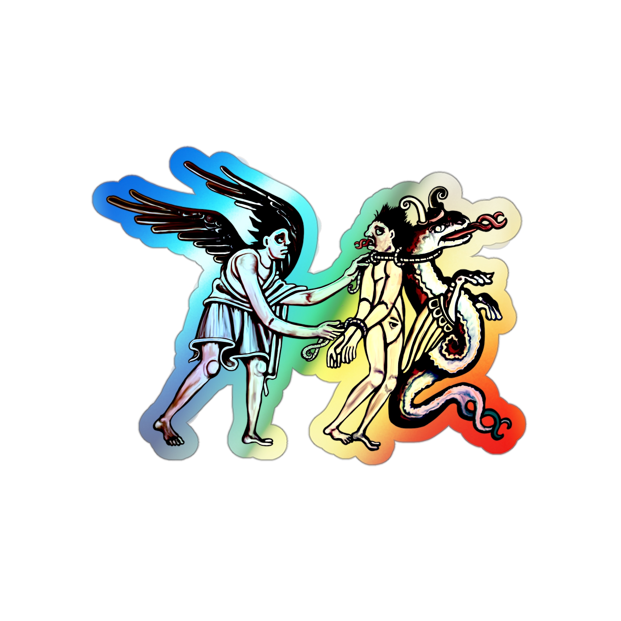 False Prophet – from”Deceiver of the Marked” by SHA’ELL – Sleek, cool, and packed with retro character, these rainbow-chrome “False Prophet” stickers by SHA’ELL are made with high-end vinyl and stand out no matter what surface you choose to decorate. Great for customizing any laptop, journal, wall, fridge, or anything in between! Available in 5 sizes for higher versatility and bigger sticker fun.