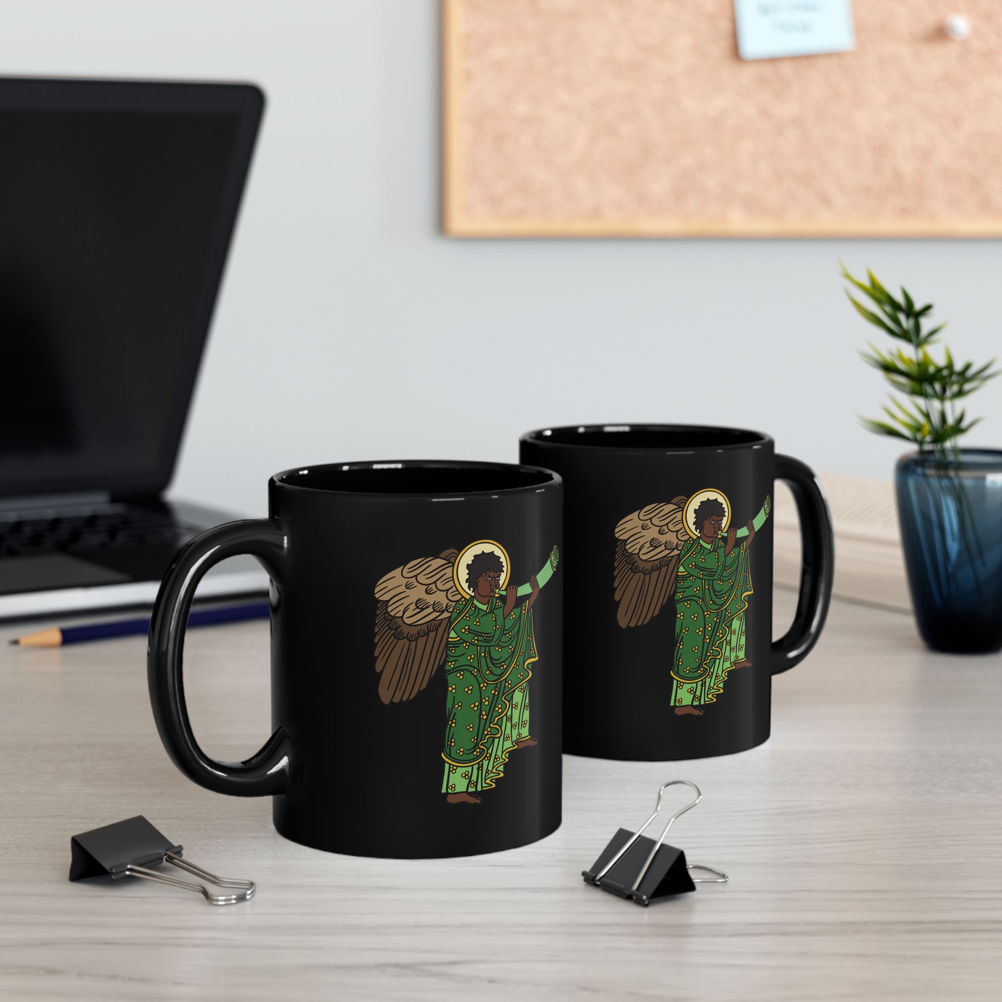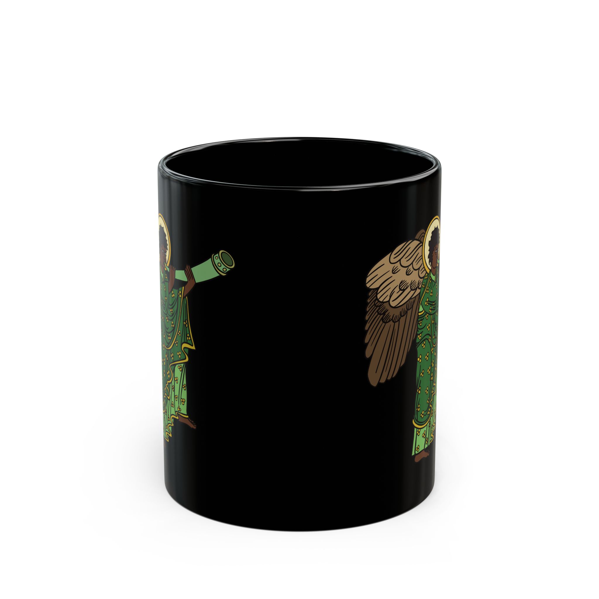 Warm your soul with a nice cuppa out of this “Green Medieval Angel” 11oz Black Ceramic Mug. Make that “aaahhh!” moment even better! It’s BPA and lead-free, microwave and dishwasher-safe, and made of black durable ceramic. The perfect gift for your true coffee, tea, or hot chocolate lover!