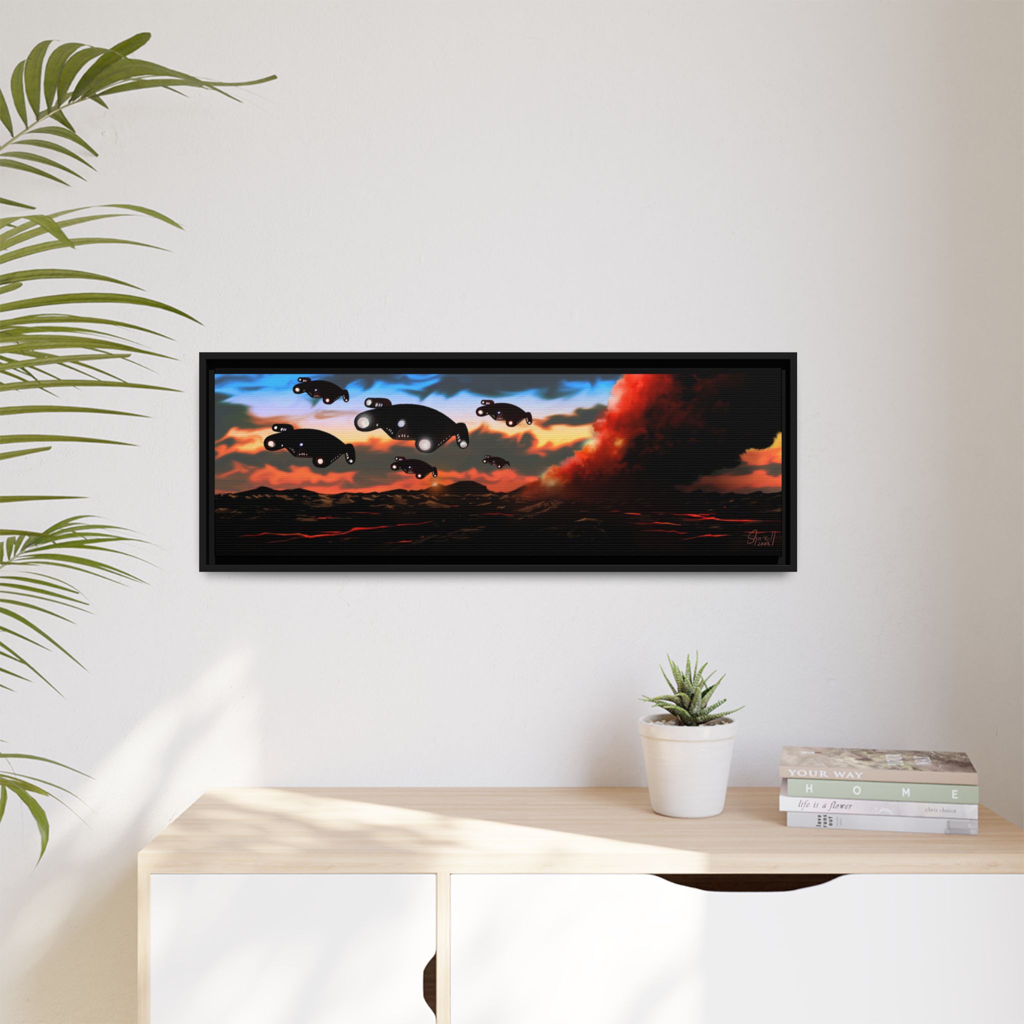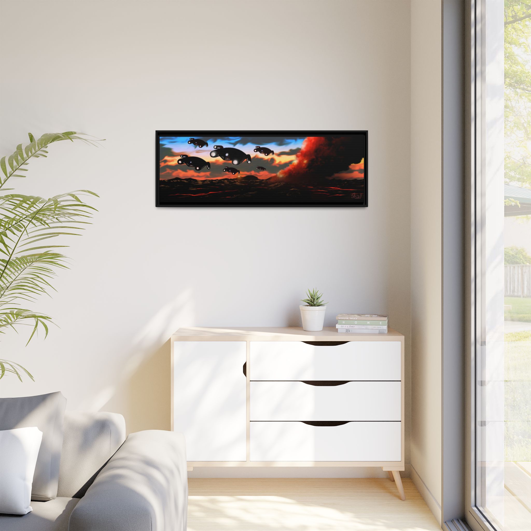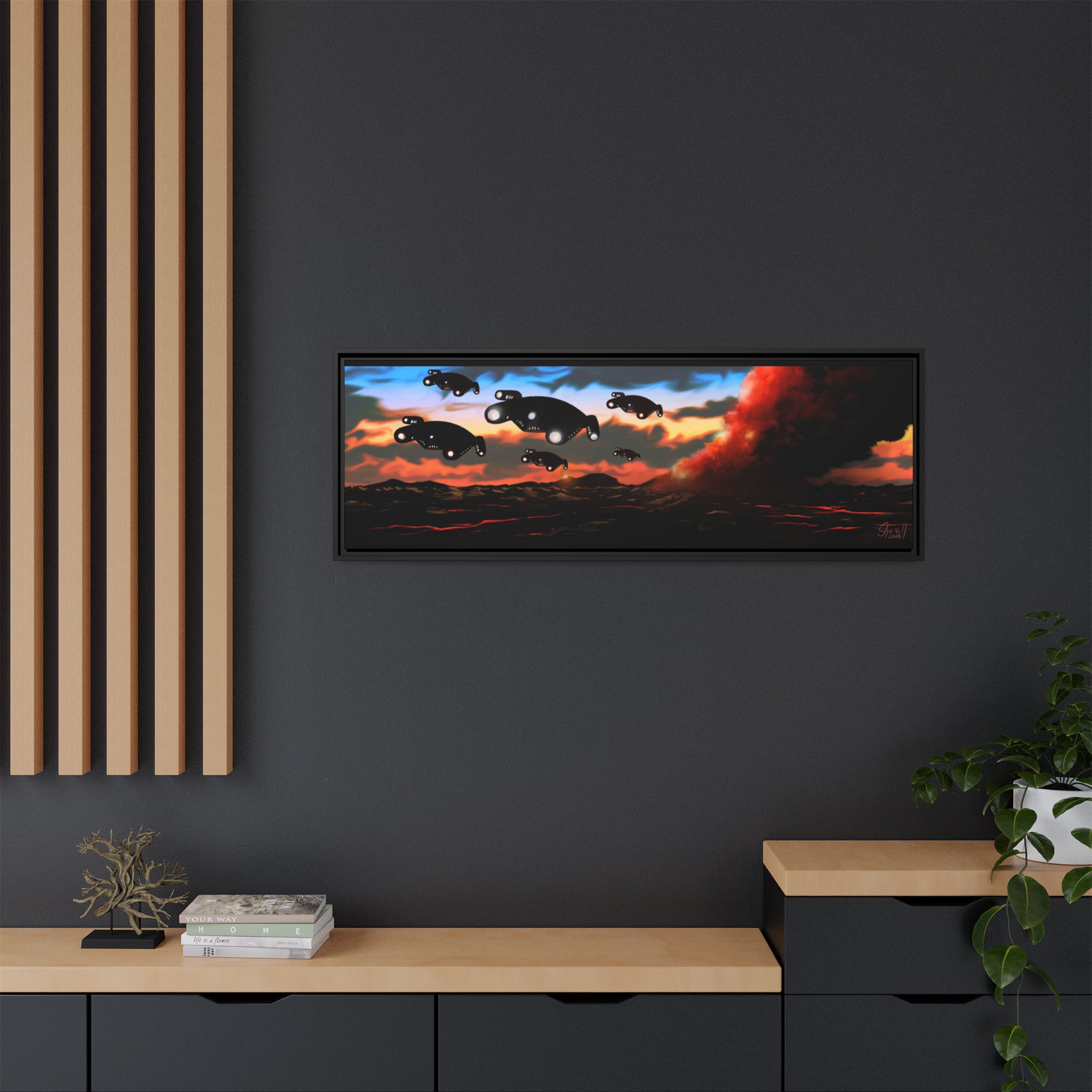 This horizontal gallery wrapped canvas print will always look as tight and flat as the day it was made. Every frame is built with a solid face to support the canvas and prevent deforming. Available in multiple sizes, comes in walnut and black frame options.