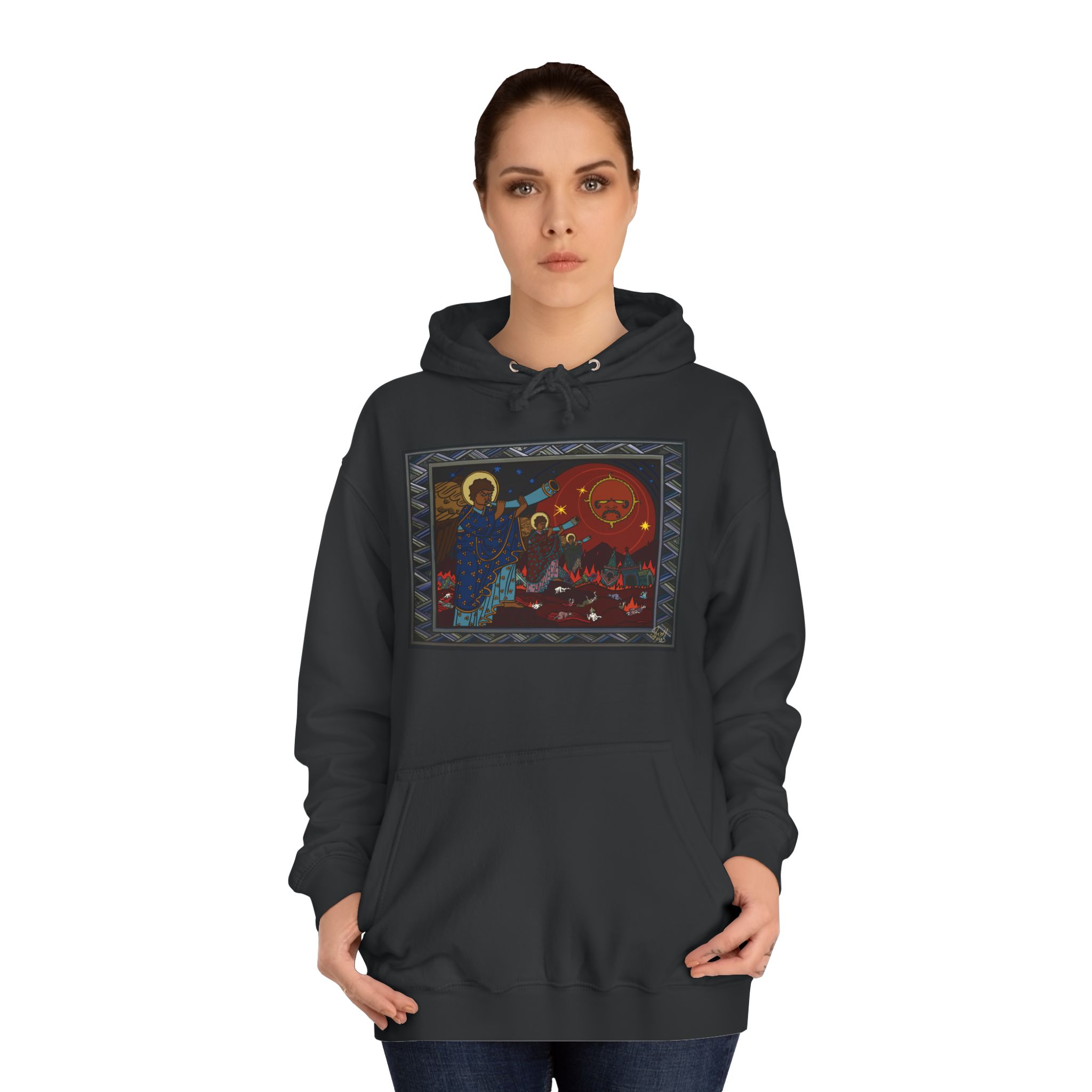 Put new life into a classic wardrobe staple with your own “Trumpets of Wormwood” Hoodie, featuring a unisex design with side seams that help the garment retain its shape on the long run. With a spacious kangaroo pocket for enhanced daily practicality, a comfy true-to-size fit, these hoodies provide a cozy wearing experience packed with style.